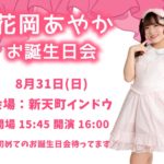 2025年8月13日 / 最終更新日時 : 2025年8月19日 博多ORIHIME NEWS 8/31(日) 花岡あやか お誕生日会 『花岡あやか お誕生日会』開催日:2025年8月31日(日)会場:新天町ミュージックプラザINDO (福岡市中央区天神2丁目8-234 2F)開場:15:45/開演:16:00 ・ライブ中は着席での観覧をお願いいたします […]